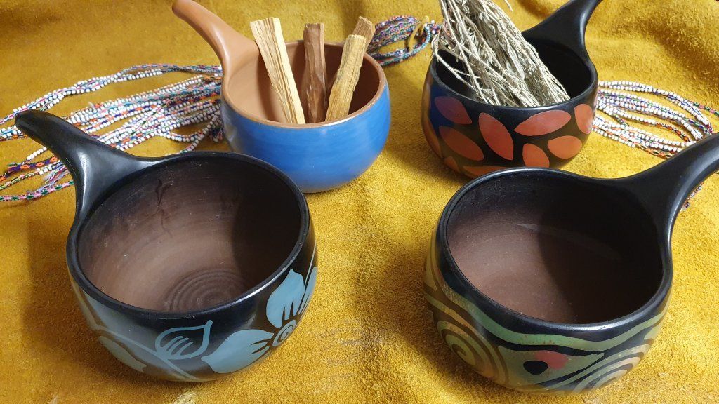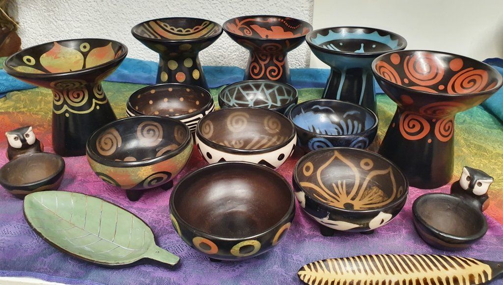 Encensoirs en céramique provenant de Chulucanas, réputé pour ses artisans potiers de tradition. Ces pièces sont entièrement réalisées et peintes à la main dans les traditions locales par les artisanes de la coopérative. Demandez les disponibilités! Le prix des bols à encens varie de Chf. 35.- à 75.-.