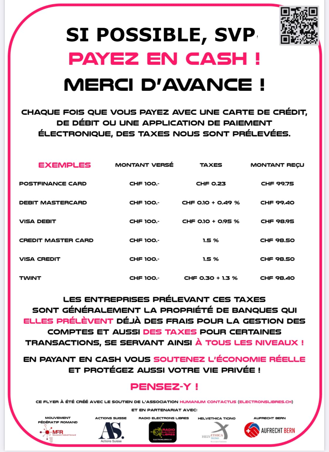 Francs Suisses uniquement,