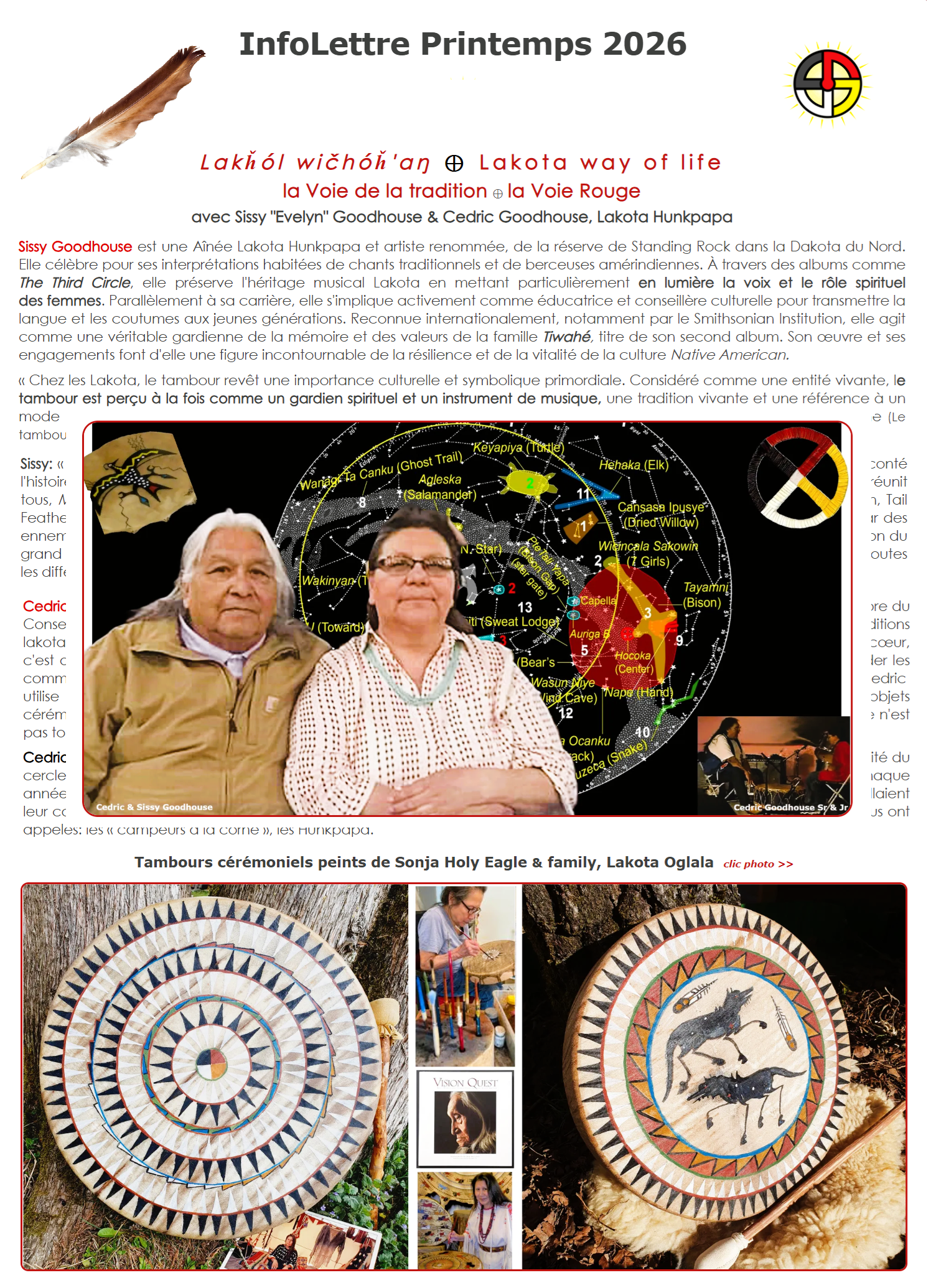 - InfoLettre Printemps 2026 Lakȟól wičhóȟ'aŋ ⊕ la Voie de la tradition 🪶la Voie Rouge, avec Sissy & Cedric Goodhouse🦬 >>ici