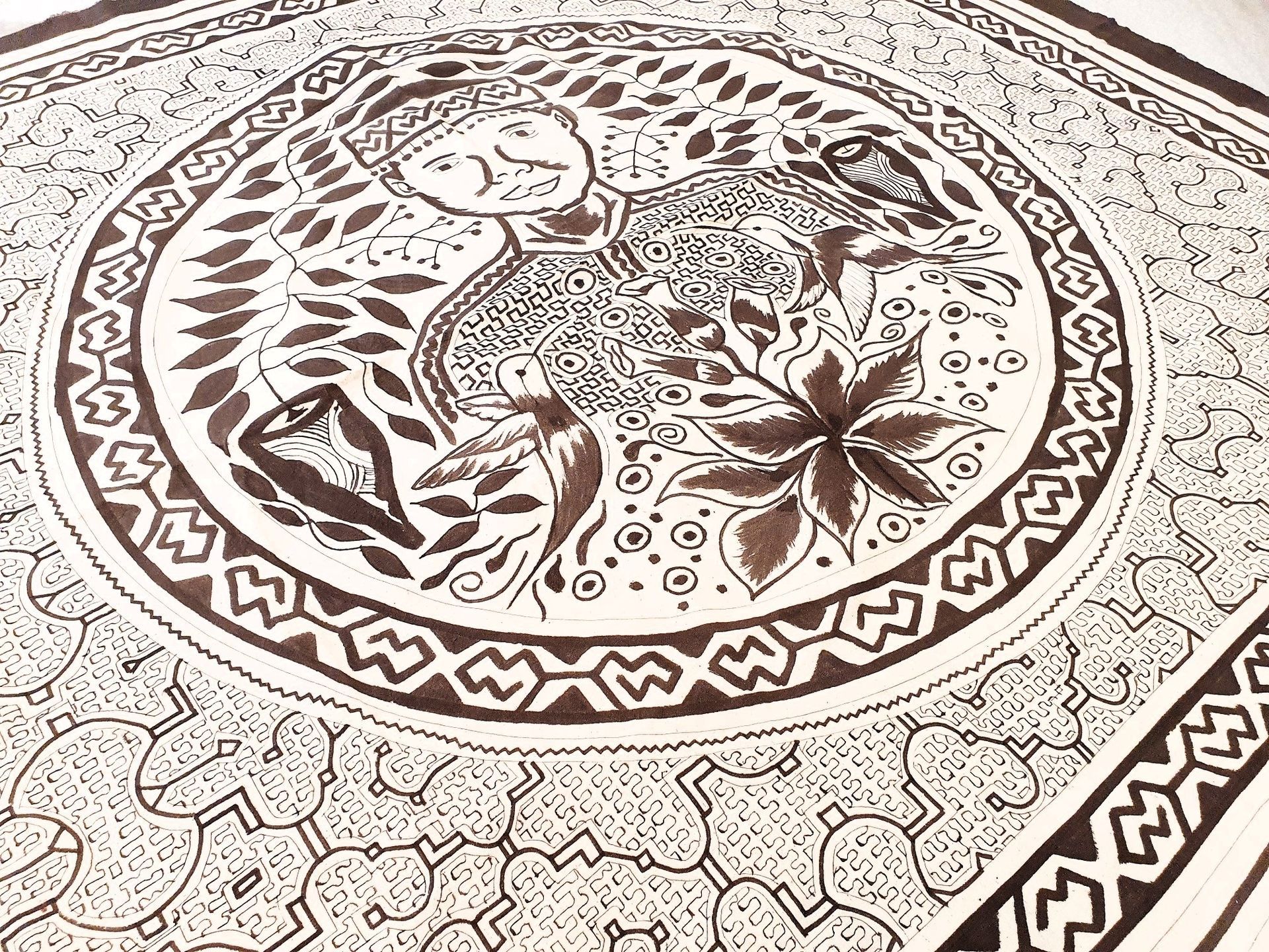 Les dessins et symboles représentés sur ces tissus sont reçus en état de transe lors des cérémonies ayahuasca.