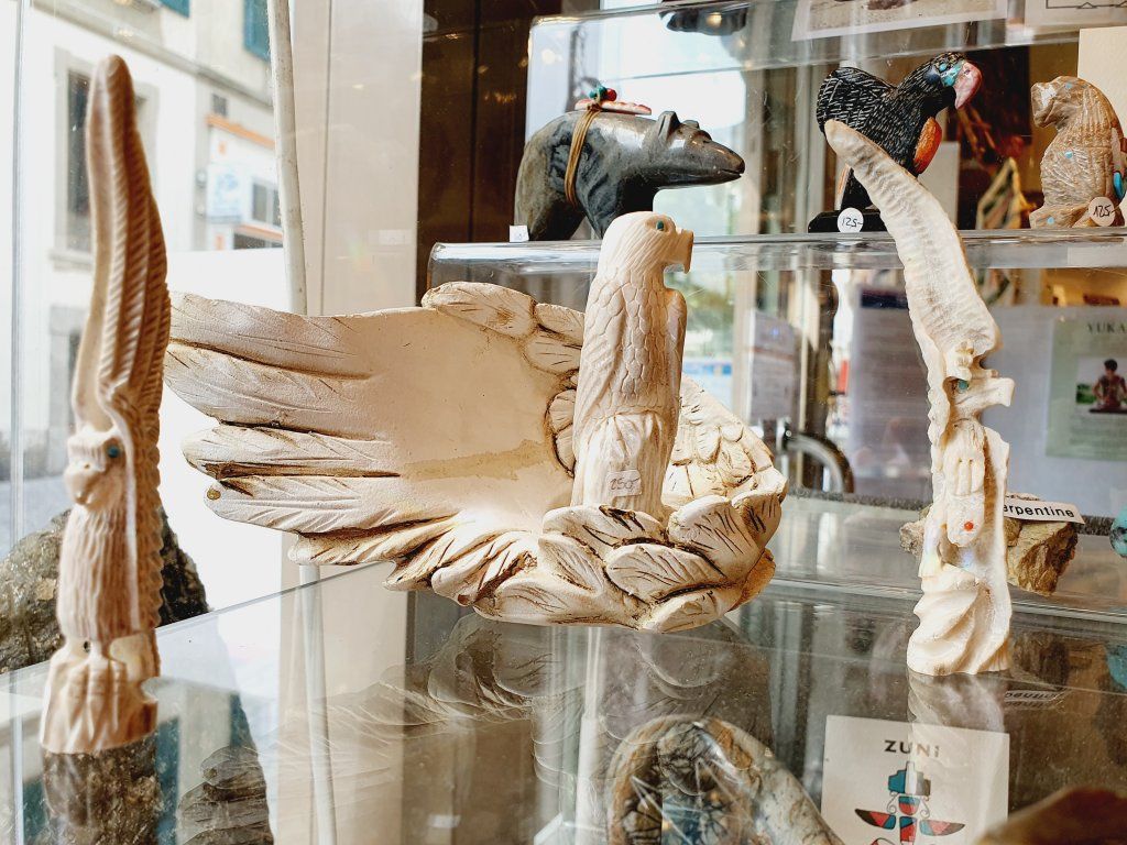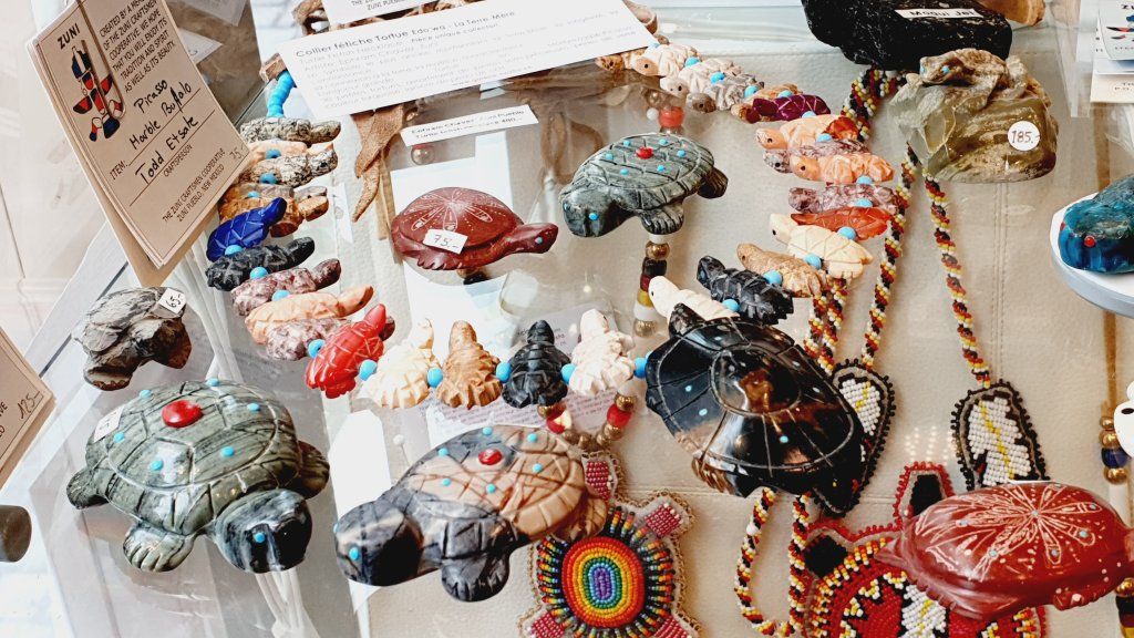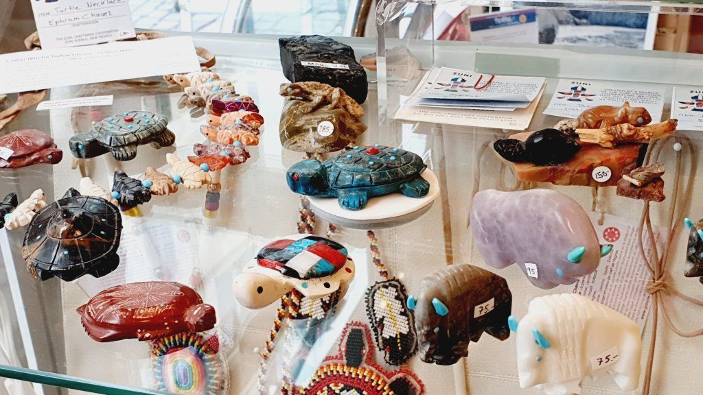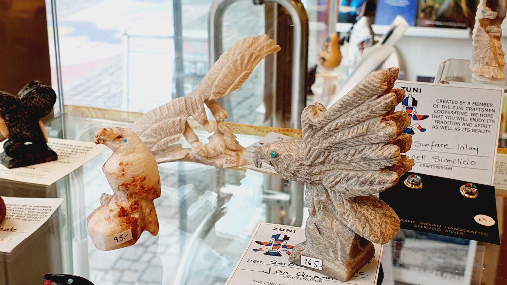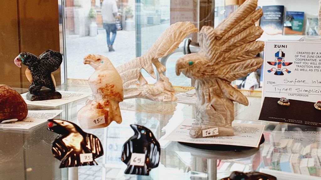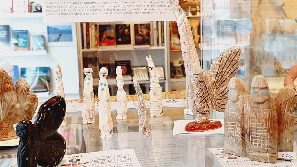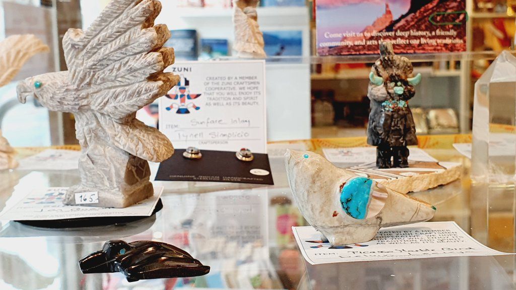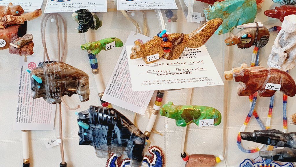 Nos pièces sont acquises dans le village de Zuni Pueblo au Nouveau-Mexique, directement auprès des artistes ainsi que de la coopérative du village.