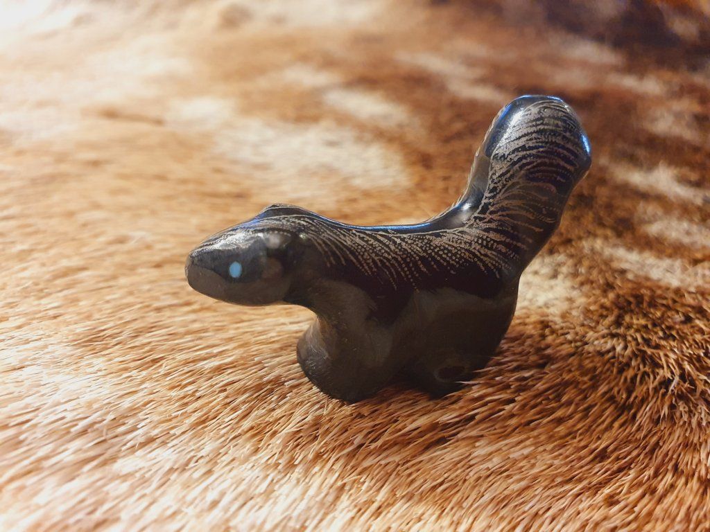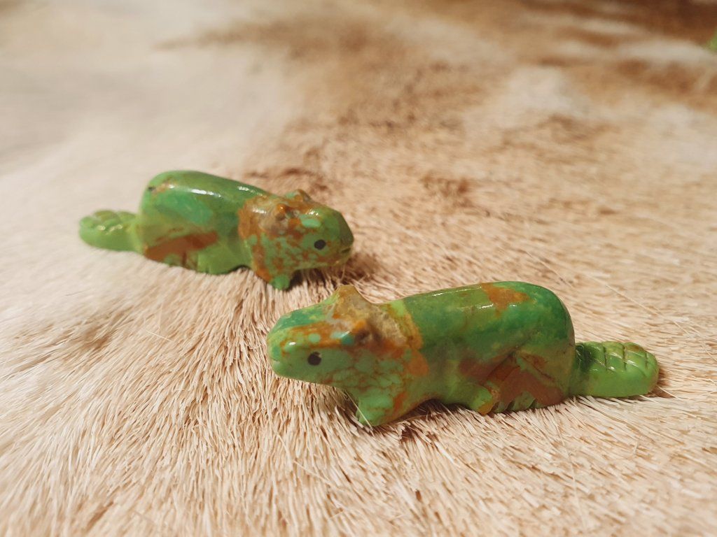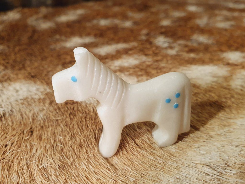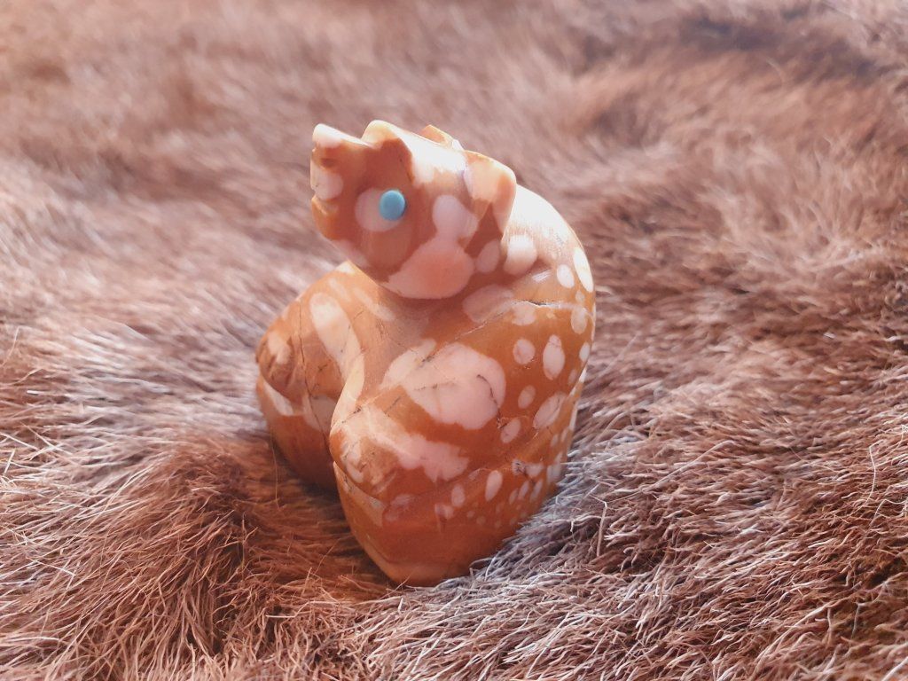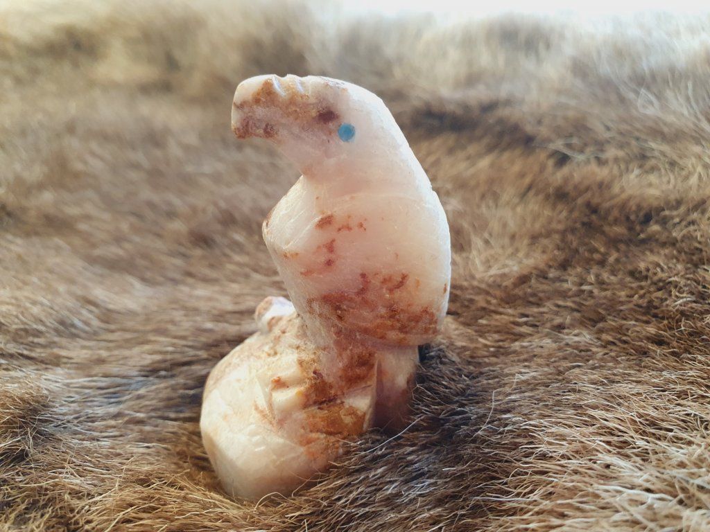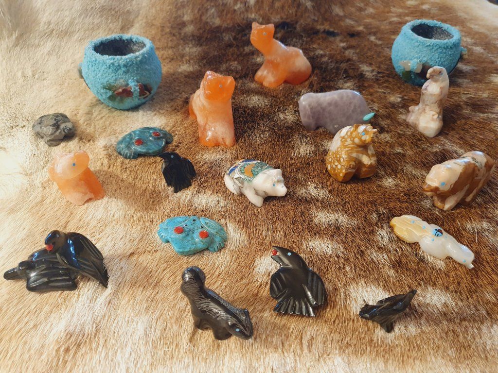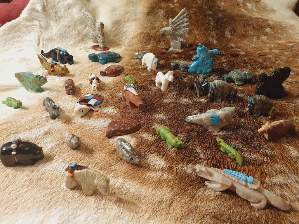 Une légende Zuni raconte l’histoire de vieilles créatures menaçantes que les esprits avaient emprisonnées dans la pierre par un sort mystérieux. Les premiers fétiches découverts étaient des sculptures précolombiennes d’animaux fantastiques ou inconnus; au cours des siècles passés, les sculpteurs ont reproduit des animaux réels du monde qui les entoure, chacun avec son propre esprit ou signification.