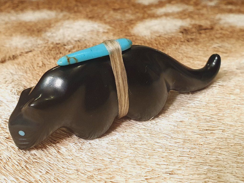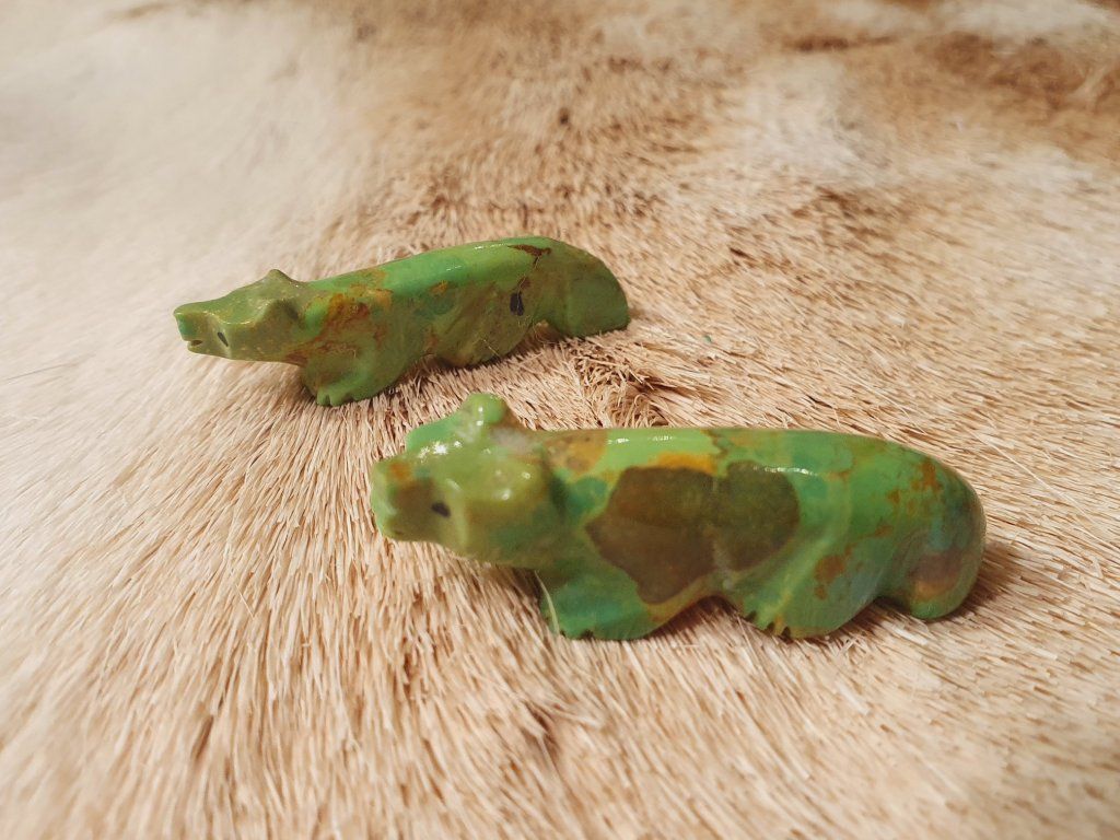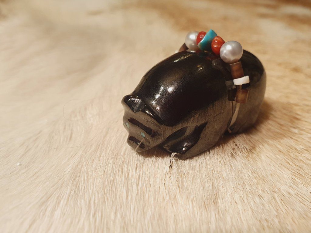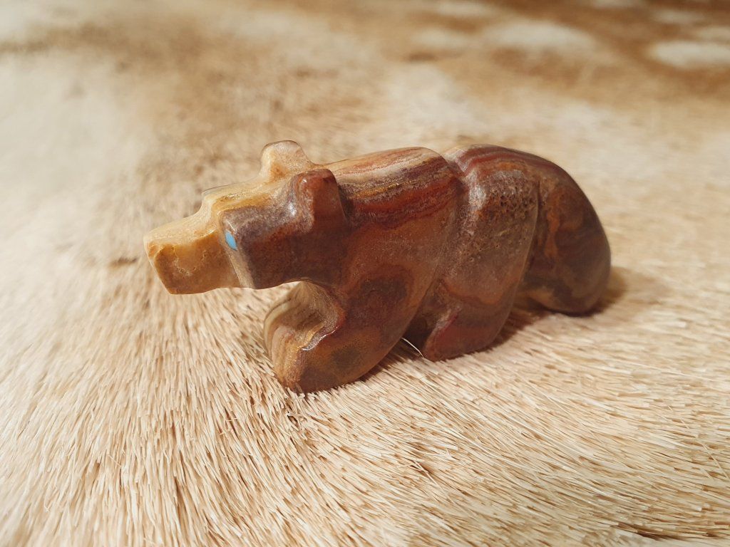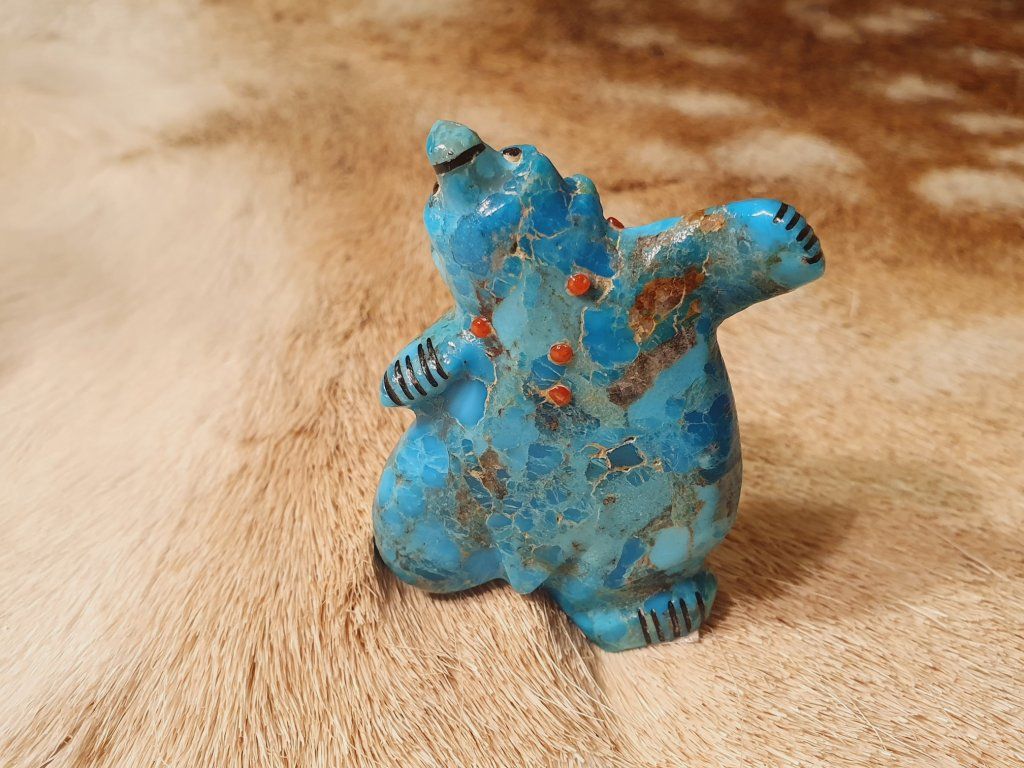 L'Ours (Anshe) était le principal animal pour les peuples Pueblo et ils en font toujours le sujet le plus répandu des fétiches Zuni. Les fétiches Ours sont utilisés pour la guérison, la protection, la force, le voyage, l'accouchement, la chasse et la cueillette. L'hibernation de l'Ours nous rappelle l'importance de l'introspection.