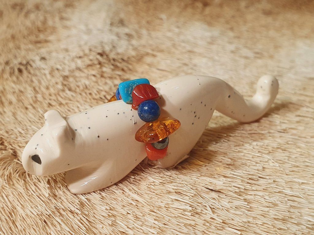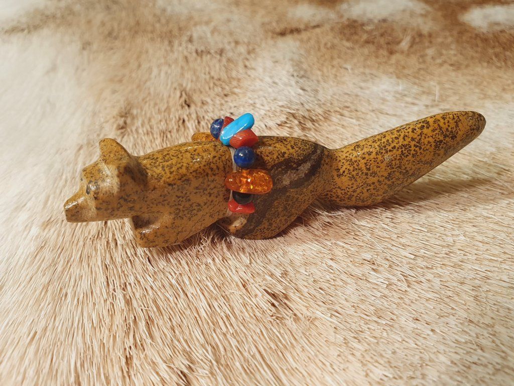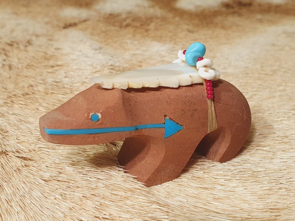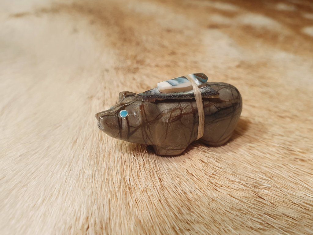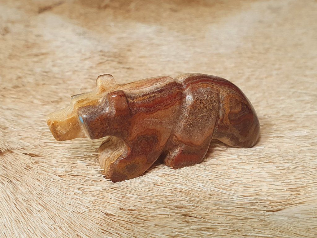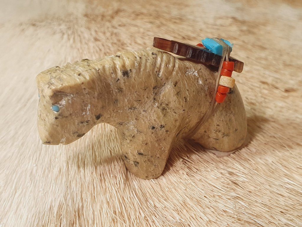 L'Ours (Anshe) était le principal animal pour les peuples Pueblo et ils en font toujours le sujet le plus répandu des fétiches Zuni. Les fétiches Ours sont utilisés pour la guérison, la protection, la force, le voyage, l'accouchement, la chasse et la cueillette. L'hibernation de l'Ours nous rappelle l'importance de l'introspection.