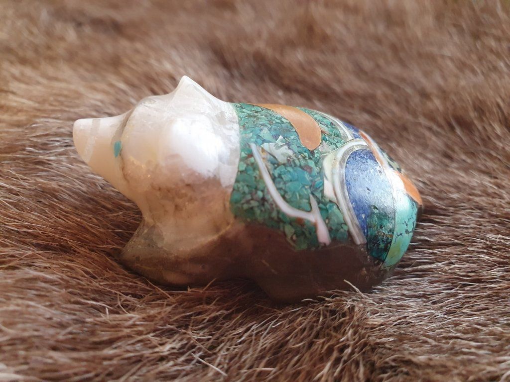 Calcilica arc-en-ciel avec incrustations de turquoise.
