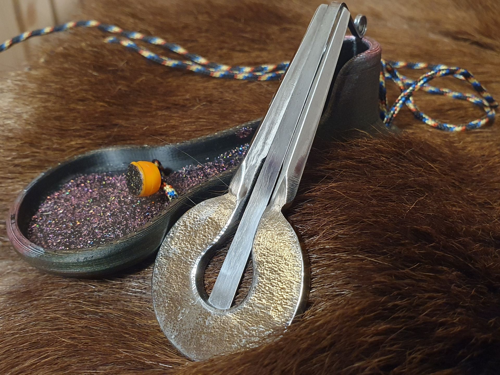 khomus, la guimbarde yakoute et messagère des esprits. Perles de verre et autres matières assorties selon modèle.