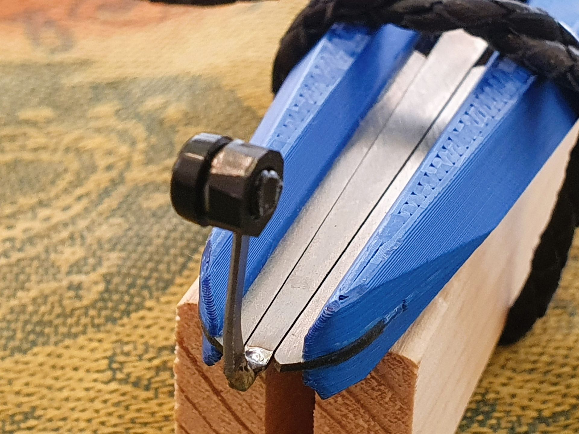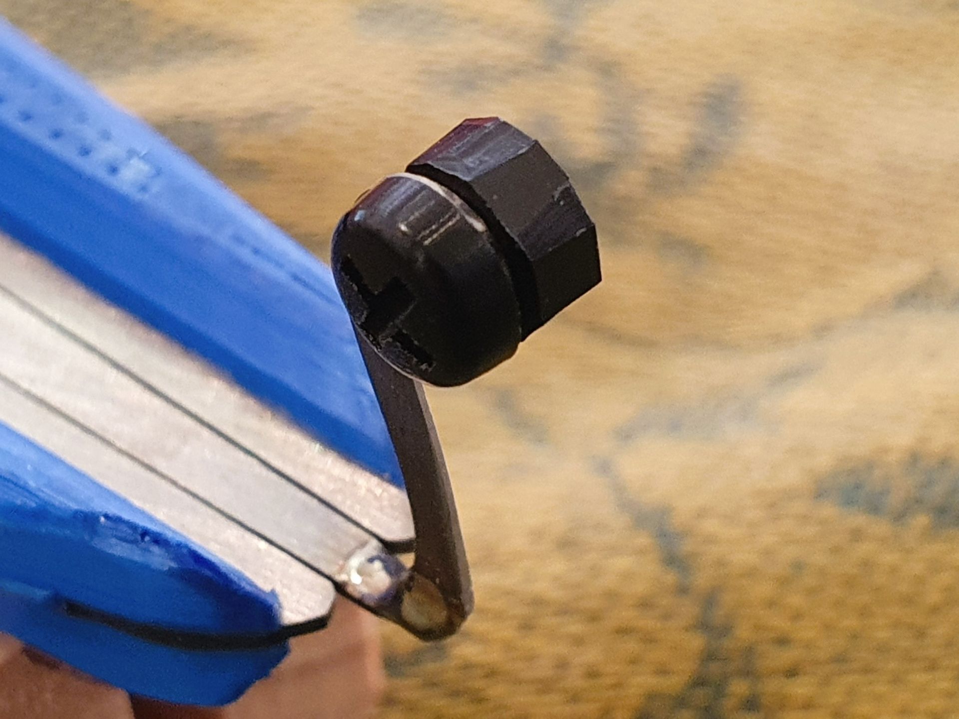(peut être une vis, une boule de pâte à modeler, du patafix, de la cire d’abeille, un mini aimant…) peut être ajouté - et retiré - librement, à l'extrémité de la languette de la guimbarde, ce qui alourdit celle-ci, ralentit sa vibration et baisse la fréquence fondamentale, la tonalité sera plus grave. Cette technique de Tuning, qui traverse les générations, est réversible pour modifier le son sans altérer l'instrument, permettant d'explorer des basses plus profondes.