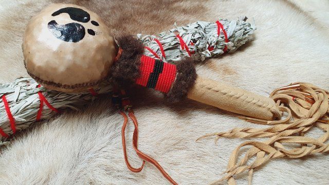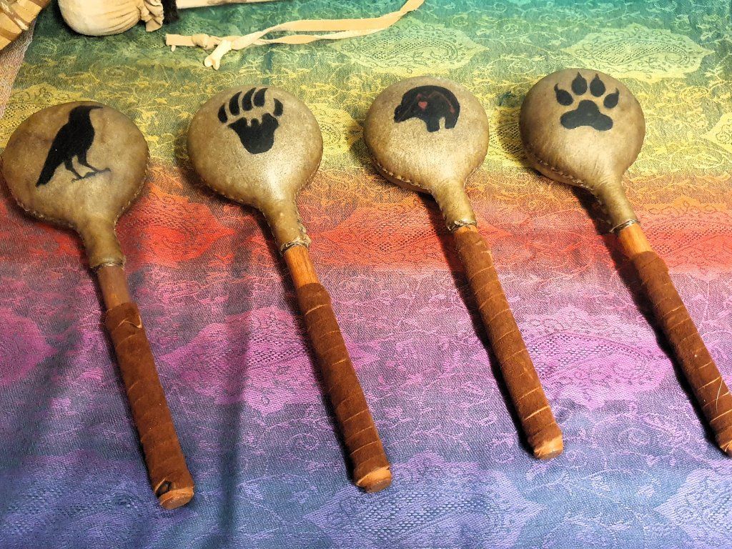 - Wagmuha - Lakota Rattles with leather-wrapped handle