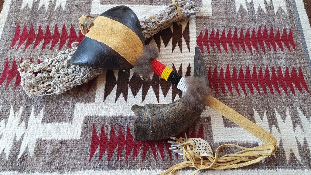 Tatanka Sunka manitu Pejuta - Buffalo & Wolf medicine Lakota Rattle