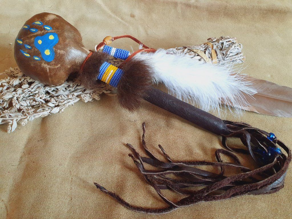 Hochet calebasse Lakota « Roue de Médecine» Wagmuha